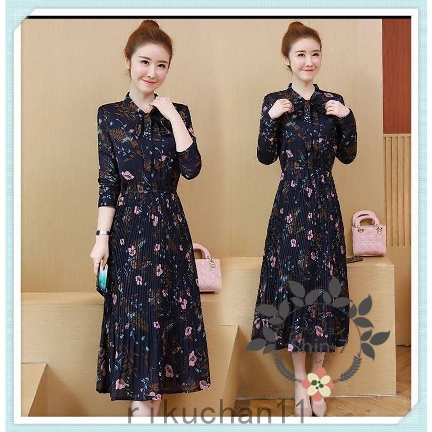 春秋 上品 長袖 きれいめ 40代 レディース ワンピース 膝丈ワンピース おしゃれ 韓国風 パーティードレス 大きいサイズ Aライン 花柄ワンピース ワンピース 品質保証 Bogadecoserveis Com